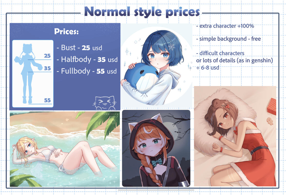 - Commercial use is 2x original price. (It will higher depend on the purpose of the commissions.)